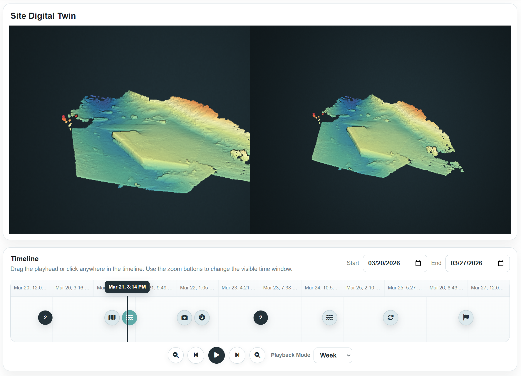 AerialTwin helps teams move from occasional snapshots to a more continuous view of site conditions by combining 3D context, historical comparison, and live sensor information in one system.