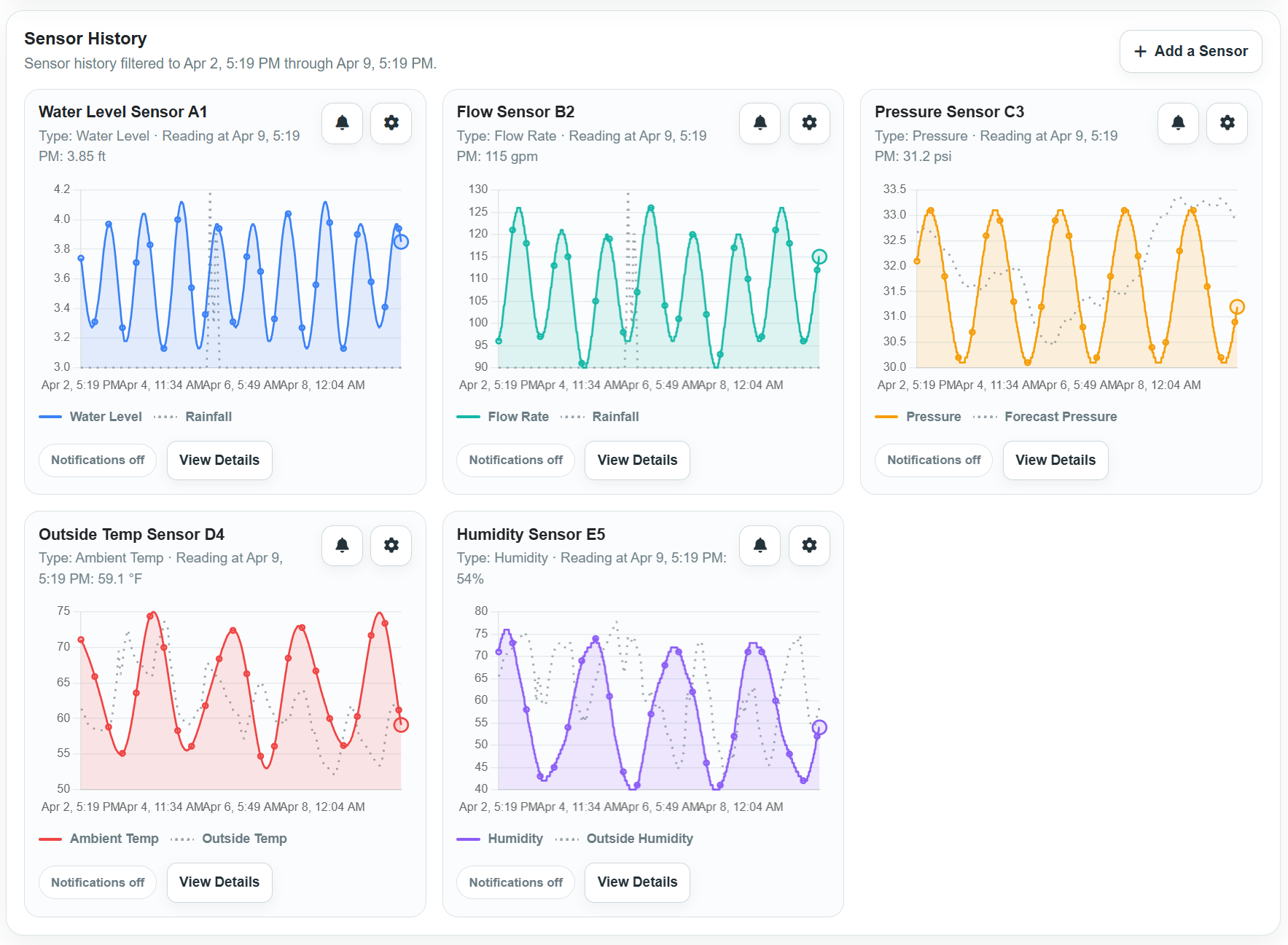 Add sensors and measurements so your team can track changing conditions over time.